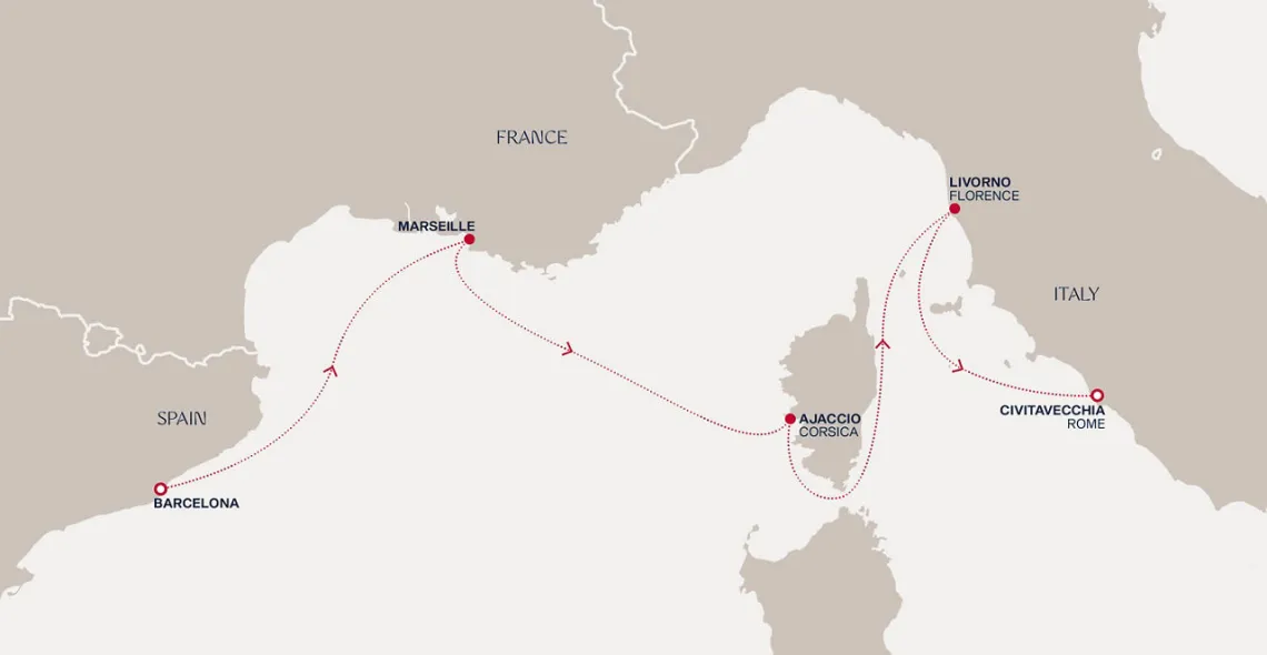 Маршрут круиза: Марсель - Барселона - море - море - Санта-Крус-де-Тенерифе, о. Тенерифе - море - море - море - море - море - море - о. Гранд-Терк - море - о. Оушен Кей - море - Косумель - море - Лимон - Панамский канал - Панамский канал - море - Манта - море - Кальяо / Лима - Кальяо / Лима - море - Арика - море - море - море - море - море - Ханга-Роа, о. Пасхи - море - море - Баунти-Бэй - море - море - Папеэте, о.Таити - Папеэте, о.Таити - море - море - море - море - Нукуалофа, о. Тонгатапу - море - море - Нумеа - море - море - Окленд - Тауранга - Нейпир - Пиктон - Веллингтон - море - море - море - Сидней - Сидней - море - море - море - море - Кэрнс - Кэрнс - Кэрнс - Кэрнс - Кэрнс - Кэрнс - море - море - море - море - о. Ломбок - Беноа, о. Бали - море - море - море - Хошимин - море - море - Халонг Бэй / Ханой - Халонг Бэй / Ханой - Чан Мэй - море - море - Лаем Чабанг / Бангкок - море - Сиануквиль - море - море - Сингапур - Порт-Кланг - море - море - море - Коломбо - Кочин - море - Мумбаи (быв. Бомбей) - Мумбаи (быв. Бомбей) - море - море - море - Дубай - Дубай - Маскат - море - море - море - море - море - Акаба - Суэцкий Канал - Суэцкий Канал - Александрия - море - море - Чивитавеккья / Рим - Генуя / Милан - Марсель
