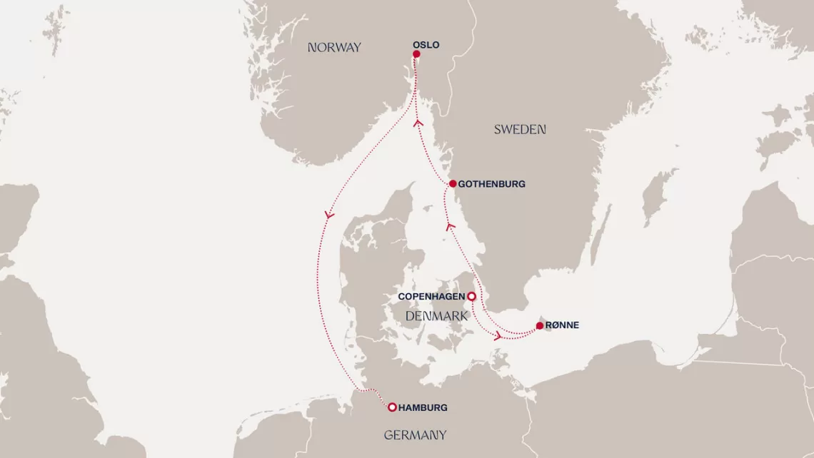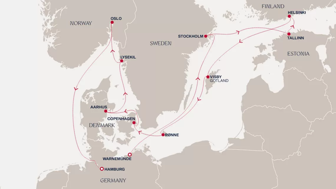 Маршрут круиза: Фор-де-Франс, о. Мартиника - Пуант-а-Питр, о. Гваделупа - Филипсбург, о. Синт-Мартен - море - море - море - море - море - Понта-Делгада, о.Сан-Мигел - море - море - море - море - Гамбург - море - Гавр / Париж - Саутгемптон / Лондон