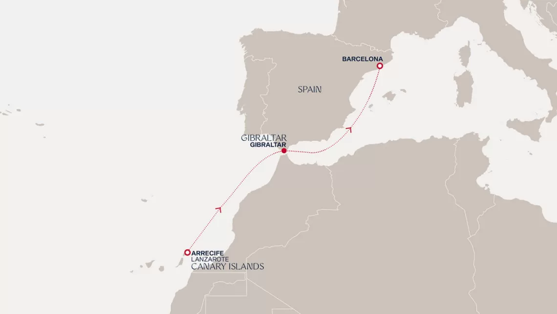 Маршрут круиза: Аресифи, о. Лансароте - море - Гибралтар - море - Барселона