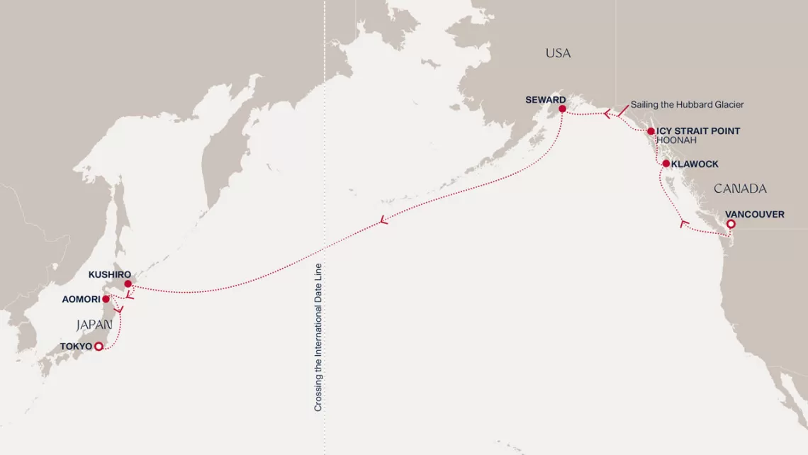 Маршрут круиза: Токио - море - Нагасаки - Пусан - море - Шанхай - море - море - Гонконг - море - Дананг - море - море - Сингапур - Порт-Кланг - Пенанг - море - море - море - море - море - море - Виктория, о. Маэ - море - море - Порт-Луи - Порт-Луи - Ля Посьон - море - море - море - море - море - Кейптаун - Кейптаун - море - море - Уолфиш-Бэй - море - море - море - море - море - море - море - Минделу, о. Сан-Висенте - море - море - море - море - море - Чивитавеккья / Рим - Ливорно / Флоренция, Пиза - Генуя / Милан - Марсель - Барселона