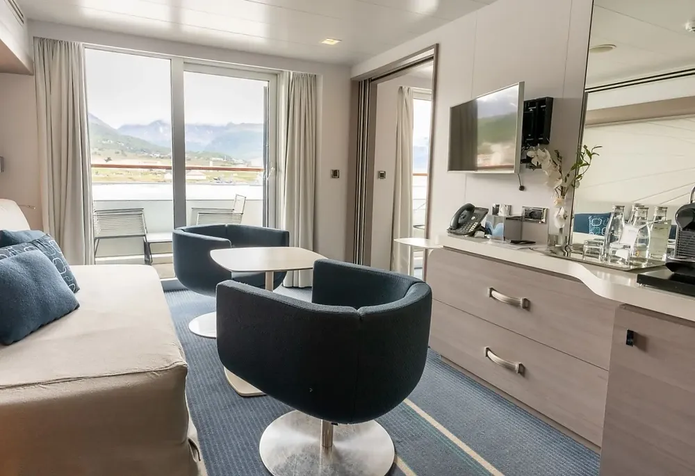 Площадь каюты: ~ 37 м2 (балкона ~ 8 м2)