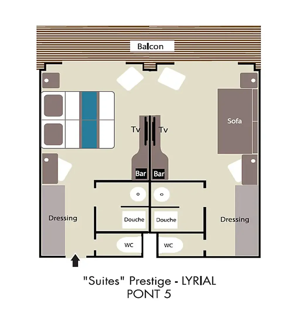 Площадь каюты: ~ 27 м2 (балкона ~ 5 м2)