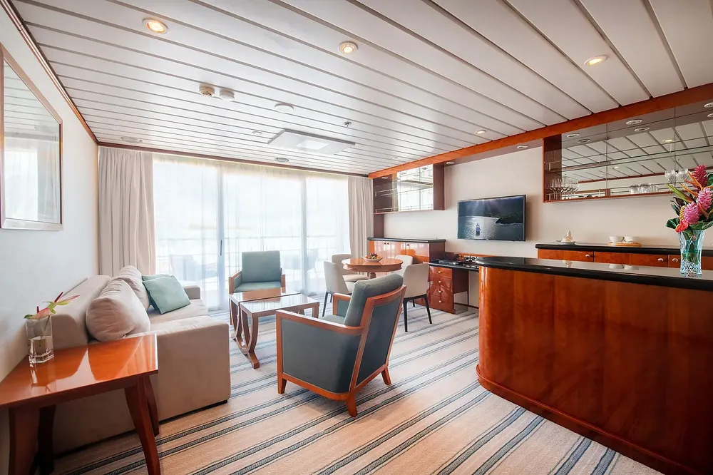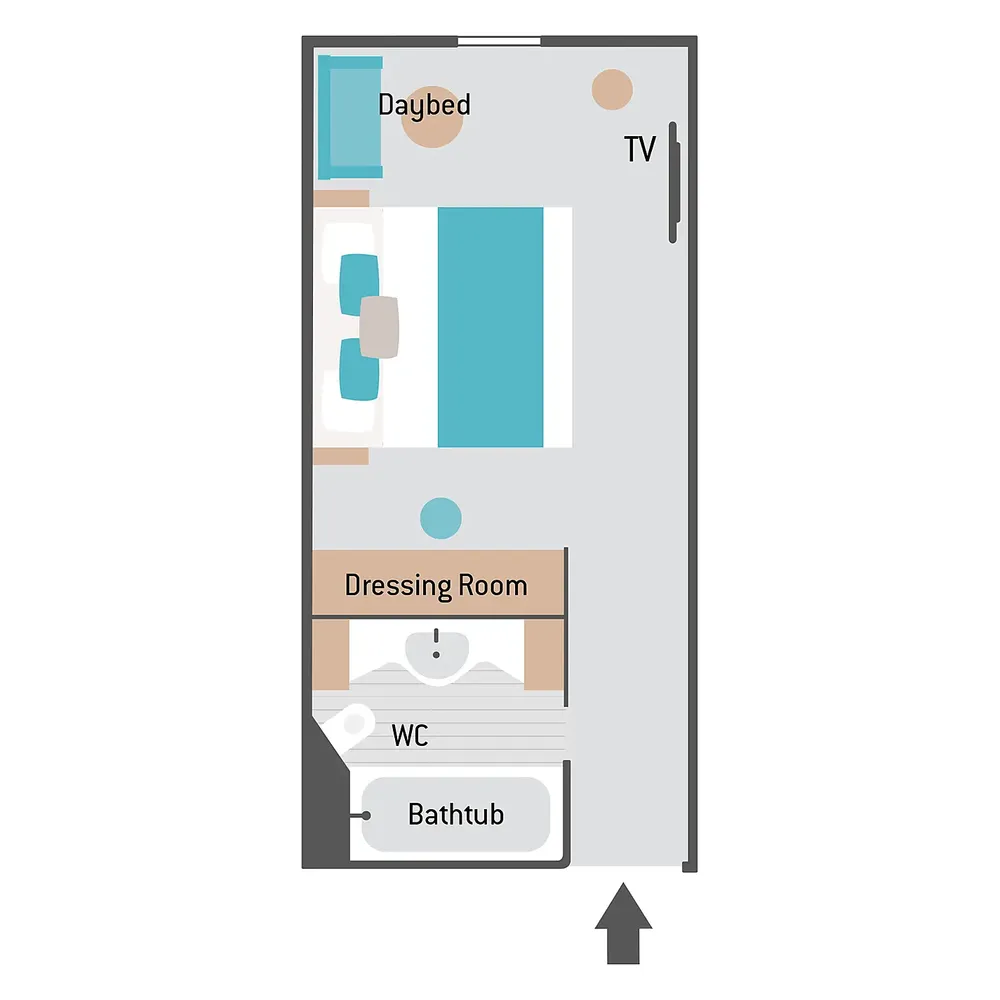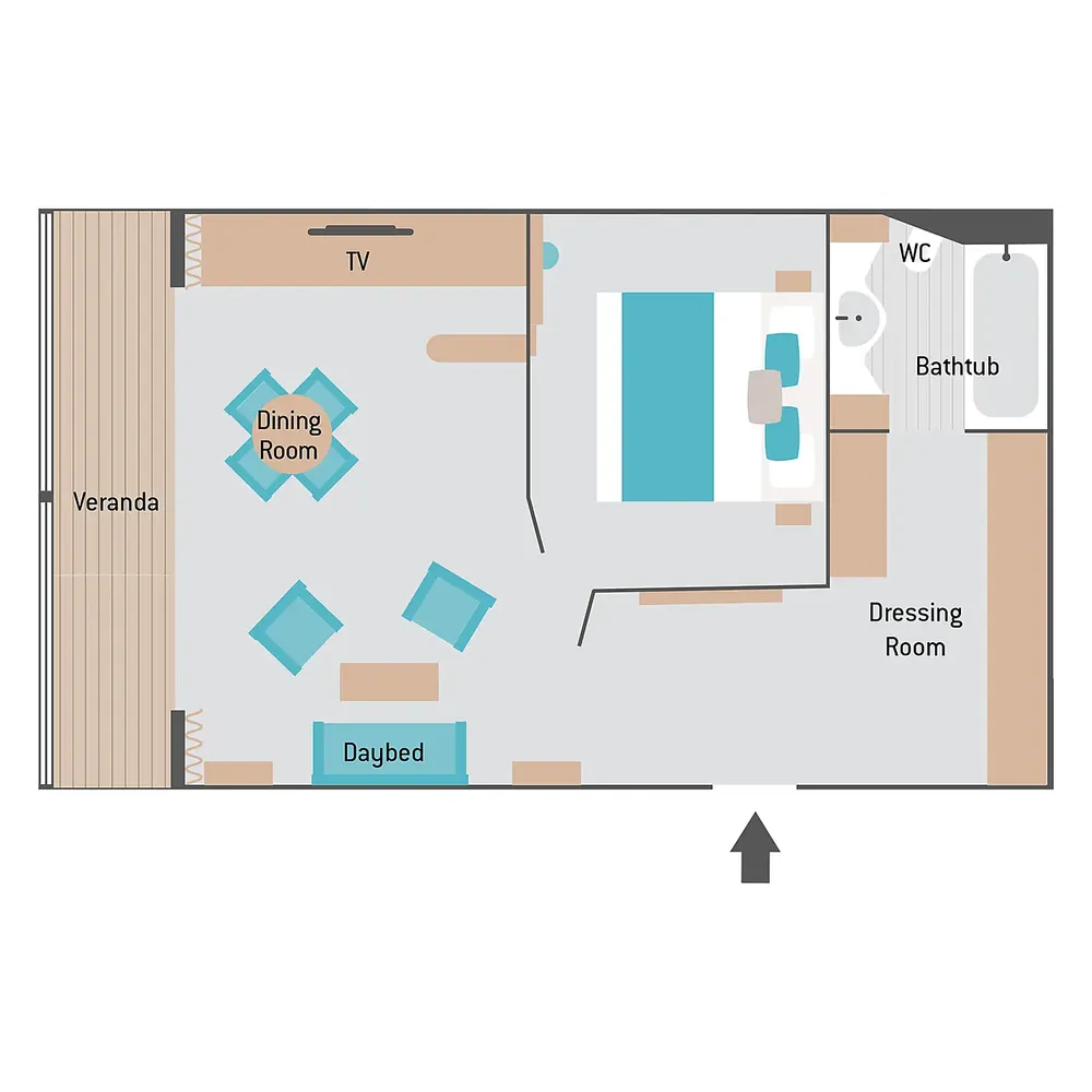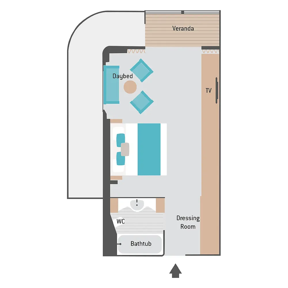 Площадь каюты: ~ 49 м2 (балкона ~ 7 м2)
