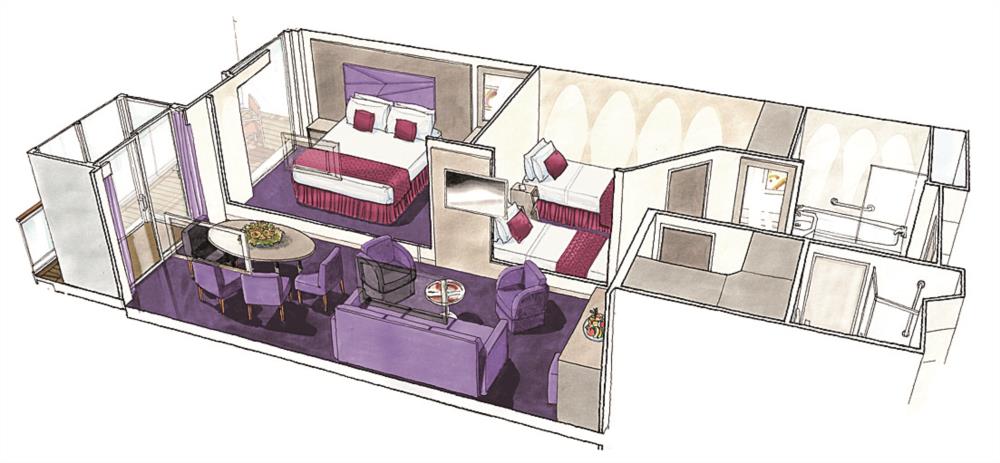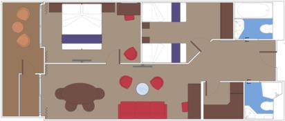 Площадь каюты: ~ 62 м2 (балкона ~ 33 м2)