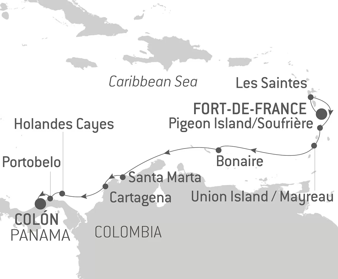 Маршрут круиза: Майами - море - Очо-Риос - море - Ораньестад, о. Аруба - Картахена - Колон - Лимон - море - о. Роатан - море - Майами