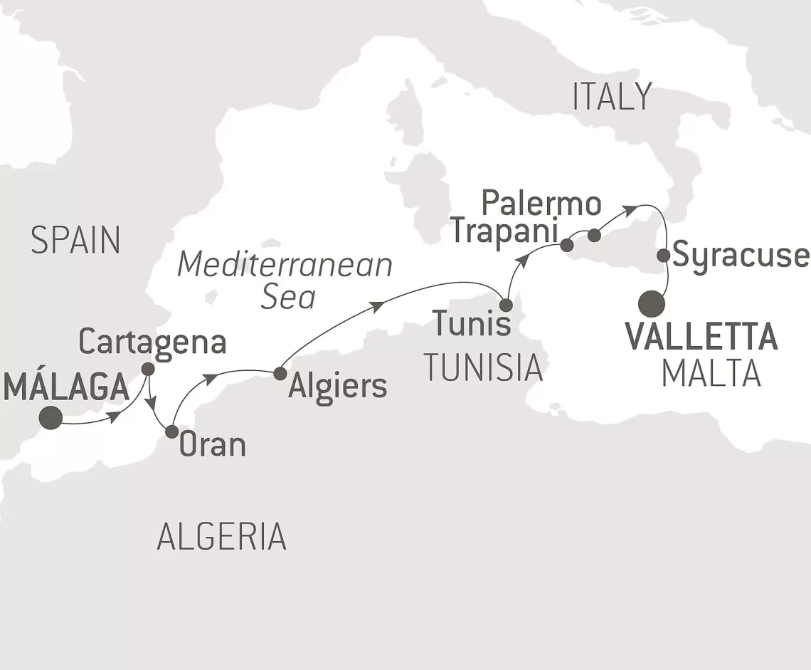 Маршрут круиза: Ливорно / Флоренция, Пиза - Кальяри, о. Сардиния - Палермо, о. Сицилия - Валлетта - море - Барселона - Марсель - Ливорно / Флоренция, Пиза